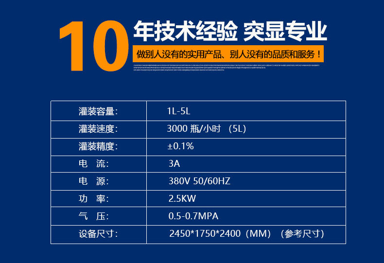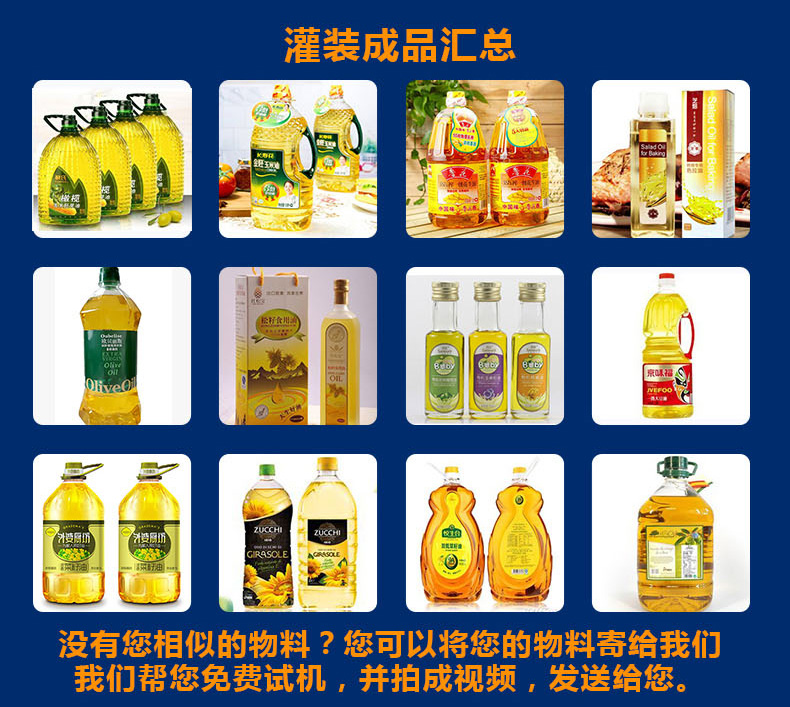 該系列灌裝機采用流量計式計量灌裝原理,多項認(rèn)證,適用于各種規(guī)格(1-5升)的南瓜籽油、榛子油、牡丹籽油、芝麻油、核桃油、山茶油