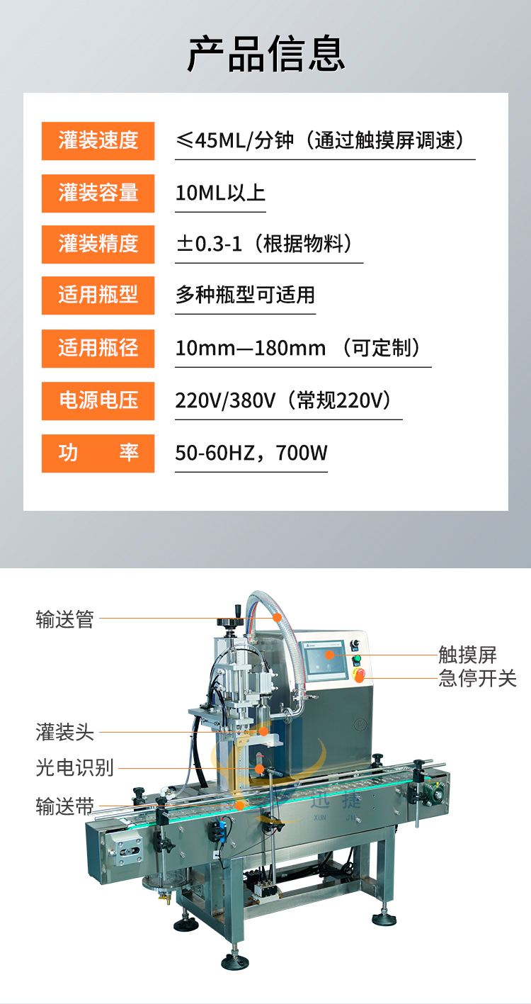 磁力泵全自動(dòng)灌裝機(jī)采用螺旋式定量原理,由觸摸屏操作顯示,設(shè)計(jì)新穎、外型美觀,適用廣泛、操作簡